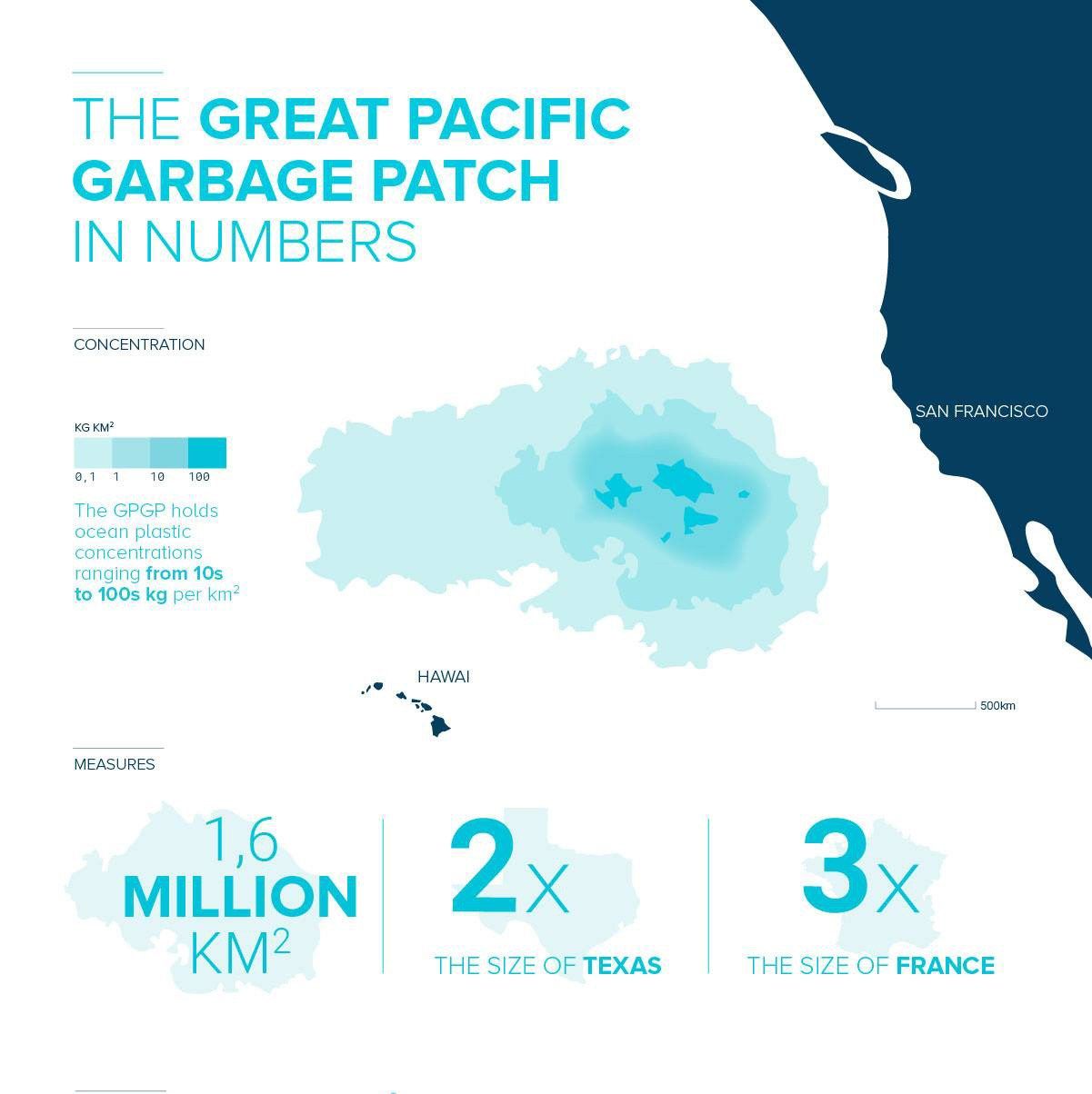That’s 600,000 square miles of rubbish floating north of Hawaii and West of San Francisco, pushed together by the North Pacific Gyre – Earth’s largest system of ocean currents. As a point of reference, Alaska is 570,374 square miles and Texas is 261,914 square miles.